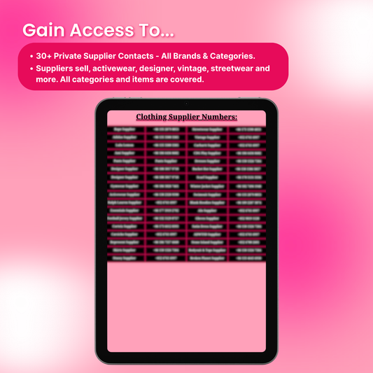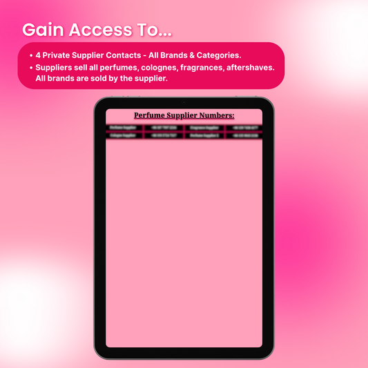 You’ll get 50+ private supplier contacts for clothing, shoes, perfumes, accessories and more. Each one is direct-to-source with no middlemen.